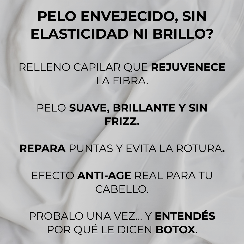 Rellená la fibra capilar, devolvé elasticidad, brillo y grosor. Todo sin formol ni agresión, solo nutrición profunda y visible desde la primera aplicación.